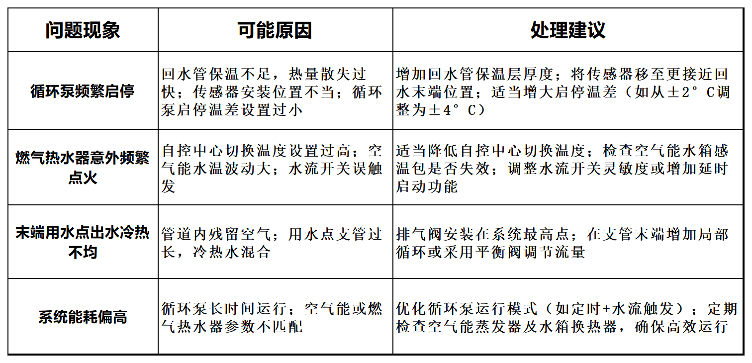 l 定时与模式设置:若用户用水时间相对固定(如早晚高峰),可采用定时循环模式,设定在用水时段前5~10分钟启动循环泵,进一步减少能耗。在非用水时段,系统可切换为“单次触发”模式(通过水流开关或手机APP启动循环),实现按需预热。