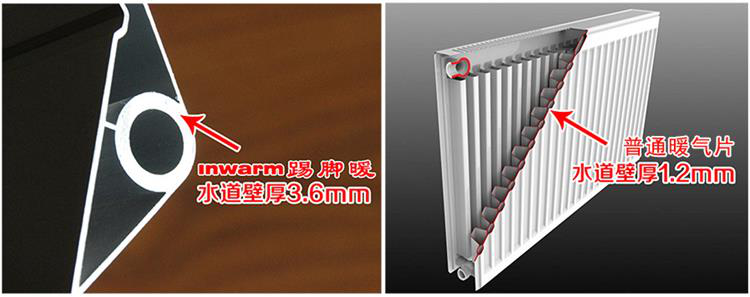 (银屋踢脚暖与暖气片水道壁厚对比图)