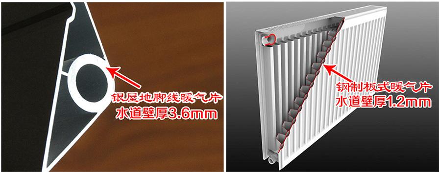 (银屋踢脚板供暖与钢制板式暖气片水道壁厚对比图)